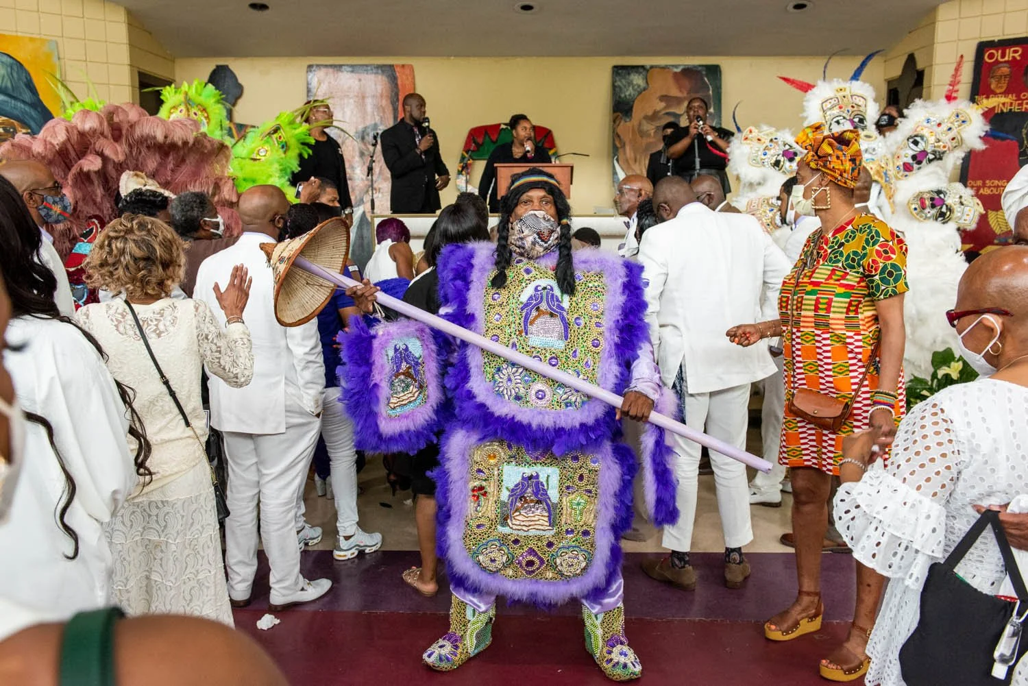 In need of knee surgery in both knees for years, Polite finally had his first replacement surgery on June 15, 2021 after finishing up work on his church in the days before. While his knees had been giving him pain for a longtime, he found that when masking the spirit of the tradition would take away the pain. He hopes to recover over this summer in time to join his tribe at Jazz Fest in October.